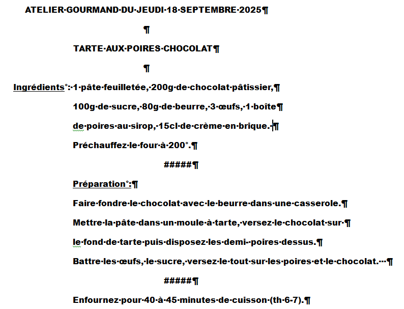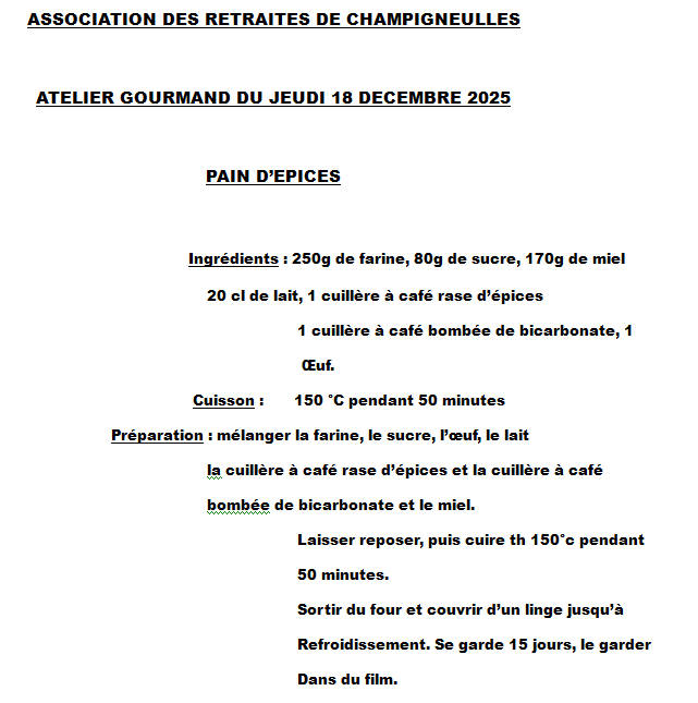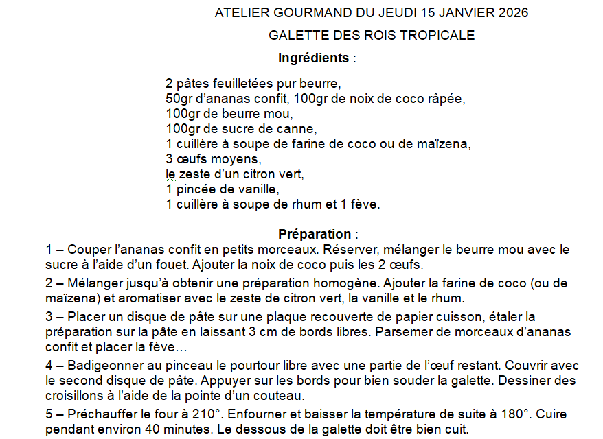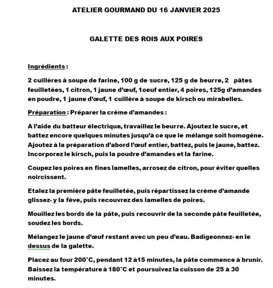 ATELIER GOURMAND DU JEUDI 16 NOVEMBRE 2023